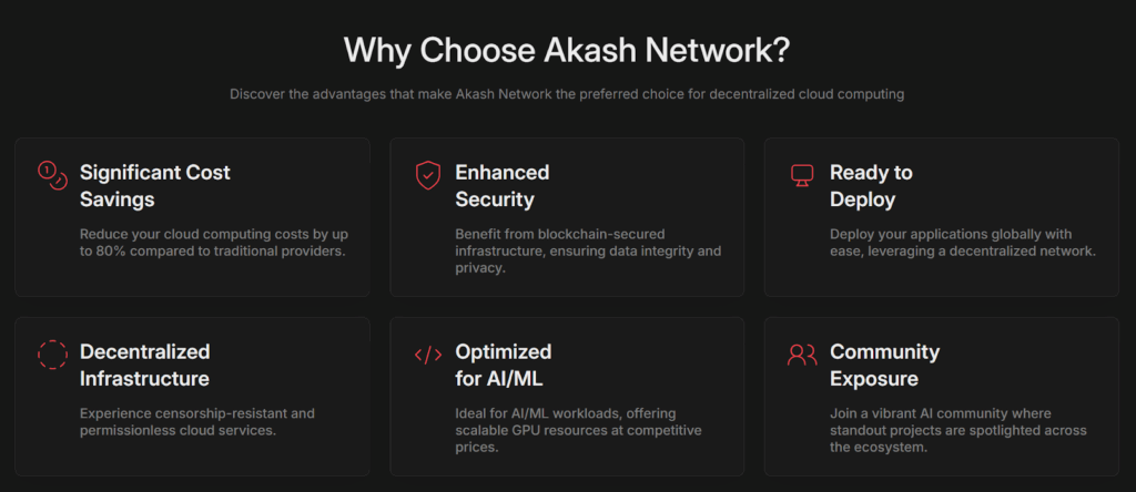 Akash Network offers a wide range of utilities and products that form the foundation of its decentralized supercloud. Each element of its ecosystem is designed to drive usability, scalability, and inclusivity across participants — from developers deploying workloads to providers monetizing idle resources. Key utility offerings include: