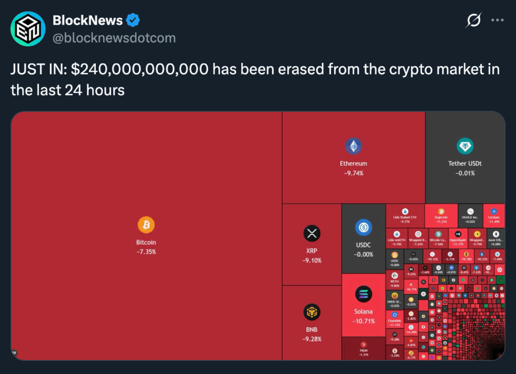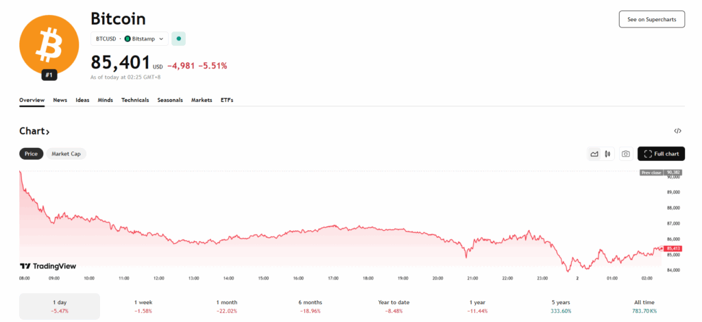 Why is Crypto Dumping Today? $240B Erased as Bitcoin Falls Below $85,000