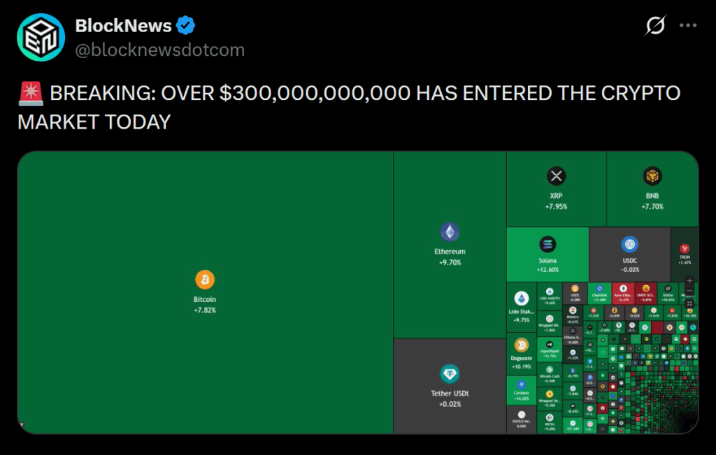 Today’s rally wasn’t just a relief bounce. It was a sentiment reset. Institutional willingness to re-engage, combined with strong technical resilience, ignited one of the sharpest inflow days of the year. With more than $300 billion rotating back into crypto, the market sent a clear and loud message: confidence wasn’t dead — it was waiting for permission to come back.