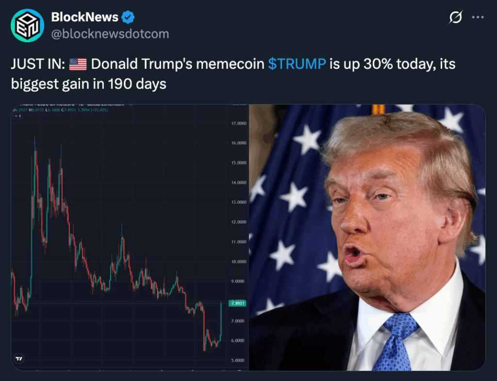 Trump’s crypto ties are key. His family’s American Bitcoin added $163M in BTC, while White House memes (e.g., AI Trump in Halo) tie into GameStop surges, spilling into memecoins. $TRUMP’s “Made in USA” narrative resonates amid pro-crypto policies. As Trump engages politically, the coin embodies his brand—expect volatility, but this pump underscores his market influence. In summary, $TRUMP’s surge blends macro recovery, viral social energy, and Trump magnetism. Investors should DYOR—memecoins remain high-risk.
