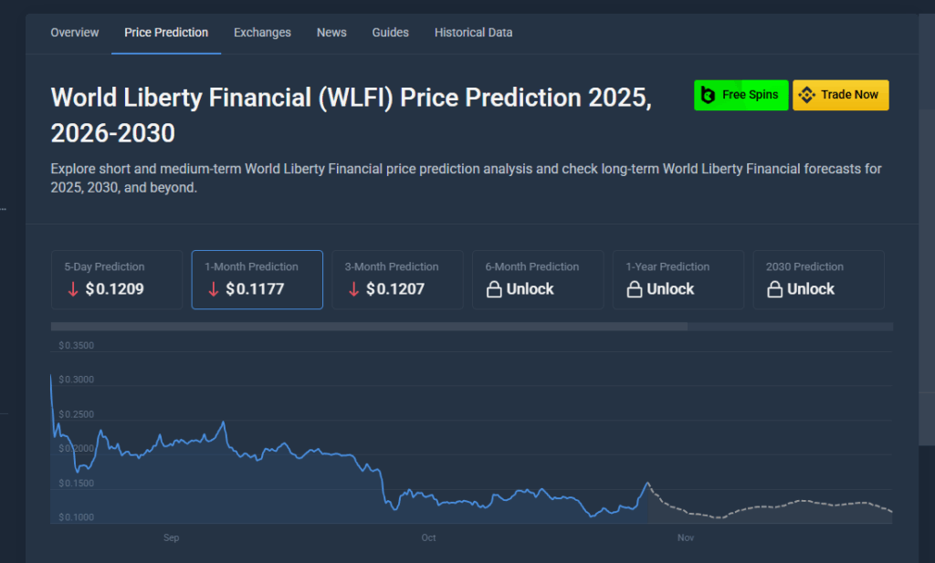 However, not all analysts are buying into the continuation story. CoinCodex forecasts a bearish reversal, projecting WLFI to drop to around $0.092 by Nov. 20. From current levels, that would imply a pullback of roughly 39.4%. Given that October delivered the largest single-day liquidation event in crypto history, it’s fair to say the market is still on edge. Any renewed risk-off wave or disappointment around the shutdown outcome could hit speculative names like WLFI first and hardest.