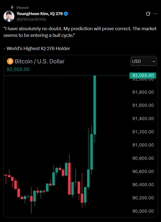 - YoungHoon Kim (IQ 276) predicts Bitcoin will hit $220K in 45 days