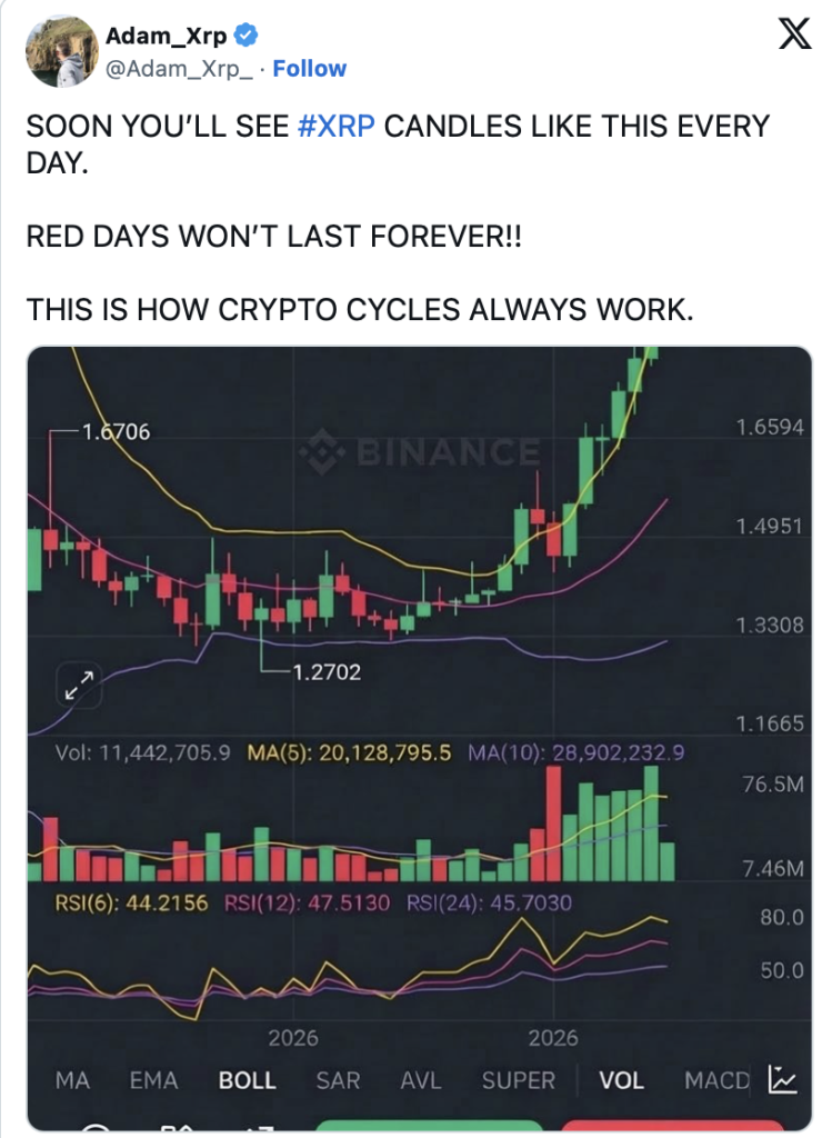 Adam_XRP’s main point ties all of this back to something bigger, crypto cycles. Markets don’t move in straight lines, and periods of consolidation or even small declines are usually part of a larger structure. That’s how these cycles tend to play out, slow build, hesitation, then expansion.