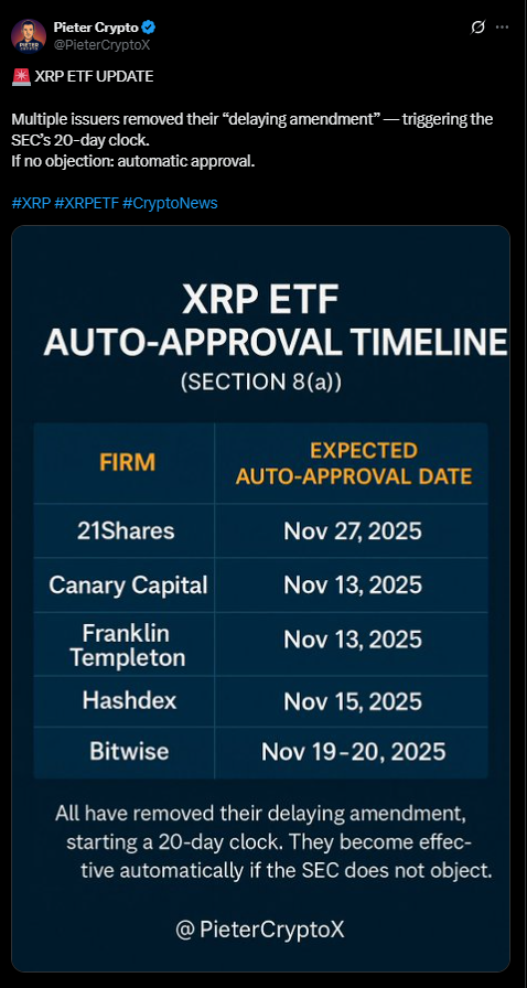 • XRP ETFs are expected to gain SEC approval by late 2025, with fund managers like Bitwise and Franklin Templeton already preparing listings.
