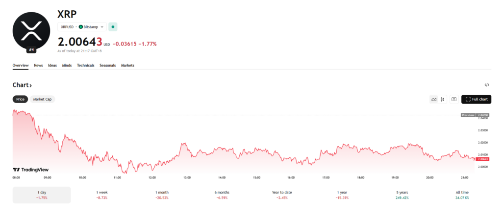 • XRP continues holding above the two-dollar support, which analysts say keeps its bullish structure intact.