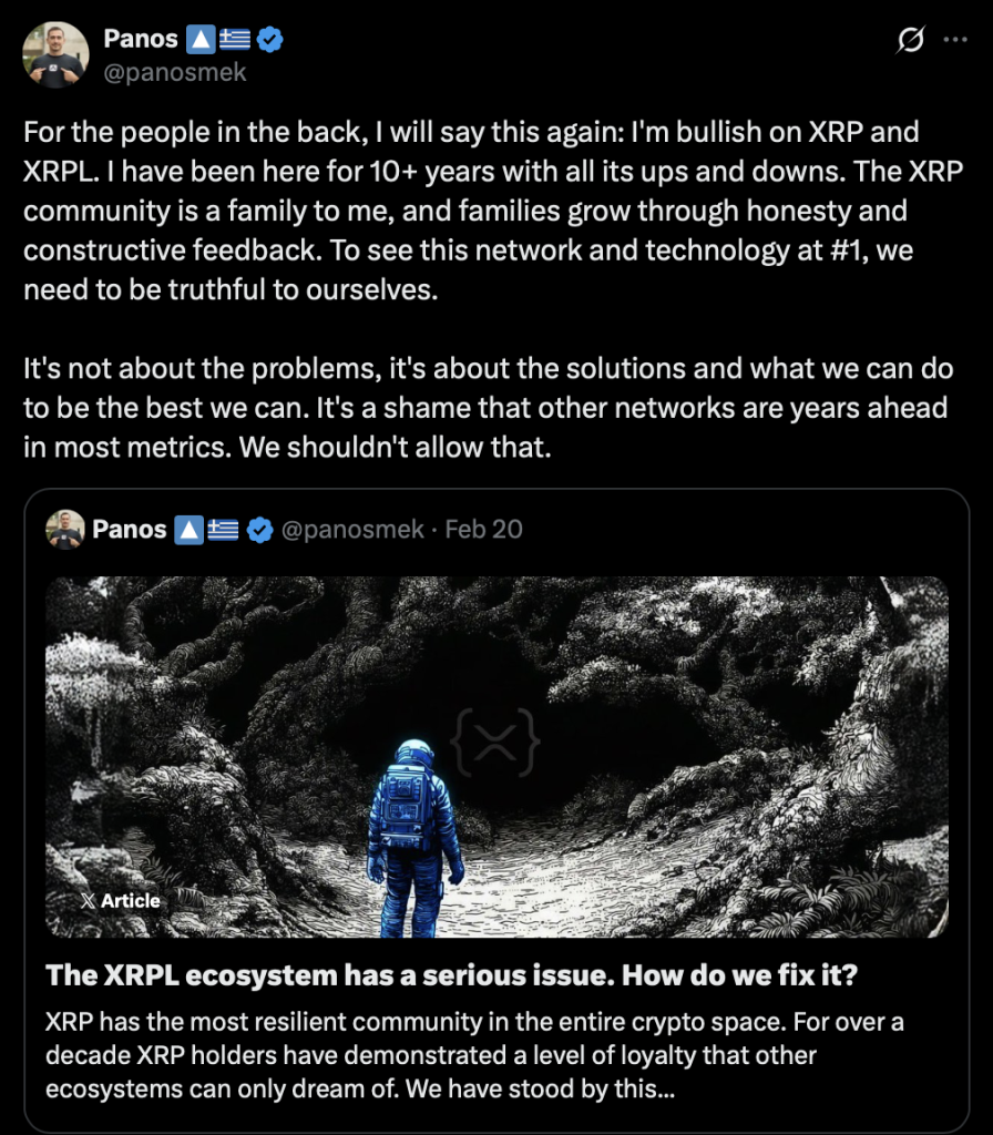 In Panos’ view, XRPL doesn’t lack potential. It lacks velocity.