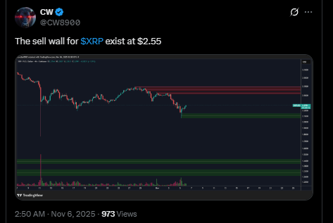 Market watchers are turning bullish again, expecting XRP to push toward new yearly highs before the end of 2025. Some traders, like CW, have warned of resistance around $2.55, a key level that might slow momentum before another leg up.