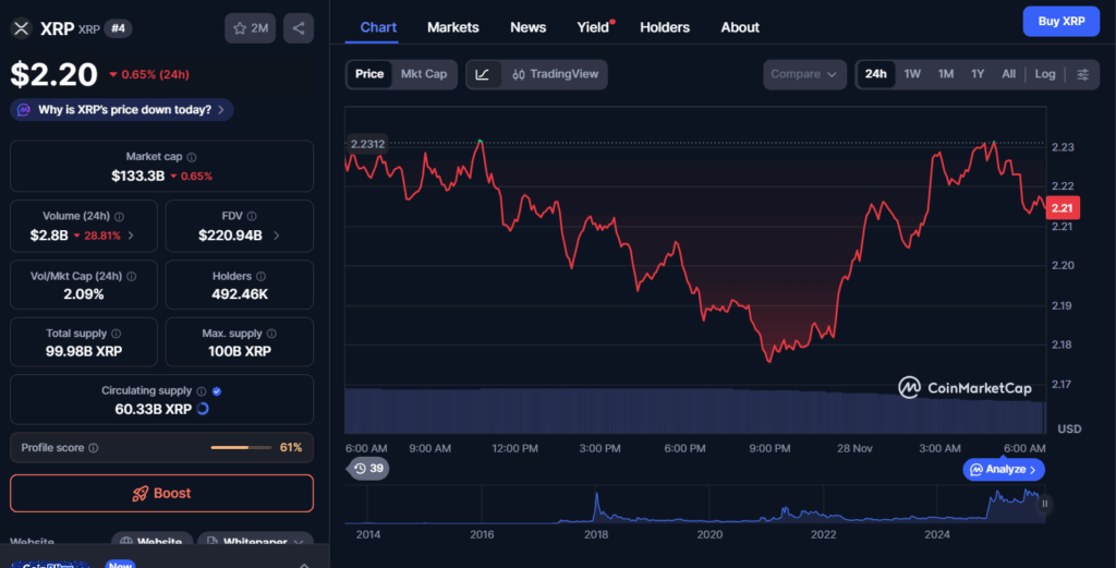 XRP’s growing institutional appetite is another major factor. Since U.S. XRP Spot ETFs launched on November 14, they’ve recorded consistent daily inflows with zero outflows, according to SoSoValue data. This steady stream of capital suggests strong long-term confidence from traditional investors. With Wall Street money flowing into regulated XRP products, the asset’s liquidity and market depth continue to strengthen—even as retail sentiment remains mixed.