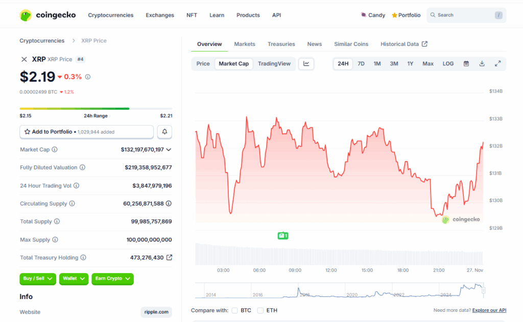 Ripple’s XRP token has managed to climb back over the $2 mark after sliding all the way down toward $1.80, giving holders at least a little breathing room. Even with that recovery, the chart still looks a bit mixed. XRP is up around 0.4 percent on the week, but the deeper time frames are still pretty red. Data shows the token dropping more than 2 percent in the last 24 hours, over 8 percent across two weeks, and more than 17 percent on the month. Even so, XRP is still up more than 51 percent since November 2024, which complicates the overall picture. The question now is simple: does XRP keep climbing, does it correct, or does the market just drift sideways for a bit?