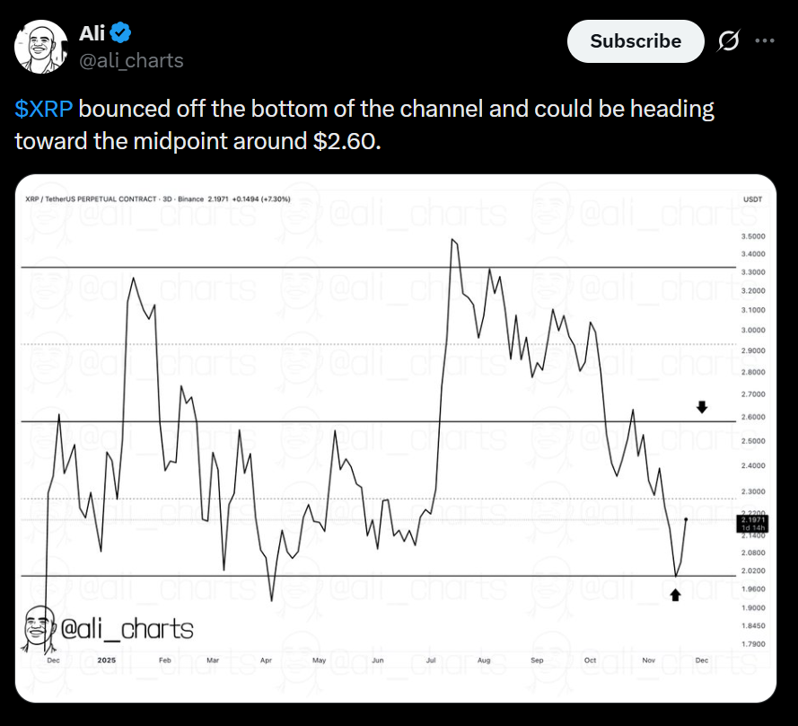 - XRP is holding above $2 but remains stuck in consolidation after a volatile month.