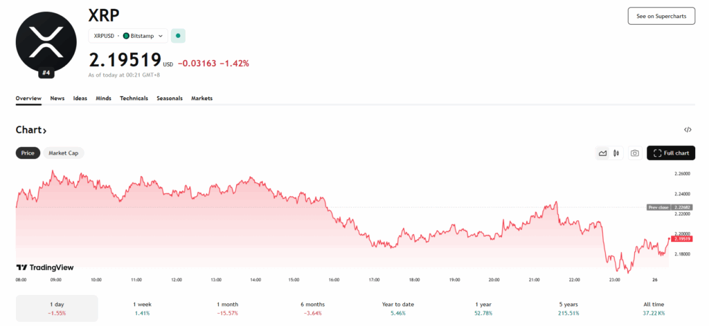 The timing of these launches couldn’t have been better for XRP’s chart. The token has clawed back about 5.2% over the past week after weeks of sell-offs. Even so, it’s still down roughly 13% this month while Bitcoin slipped to $82,175 — its lowest price since early April. Ethereum also dipped under $2,700 last week before rebounding slightly.