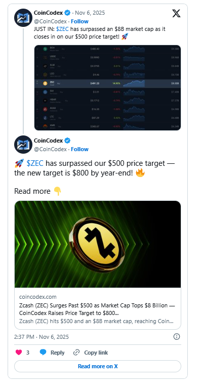 Market watchers at CoinCodex have already bumped their year-end target to $800 after the coin smashed their initial $500 goal. Still, not everyone’s convinced the uptrend can last without a breather. Some analysts, like Soul, are advising early investors to lock in profits, warning that “you should never marry your bag.” For now, ZEC’s got momentum, hype, and a touch of nostalgia — the same mix that once fueled its rise years ago.